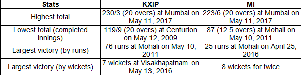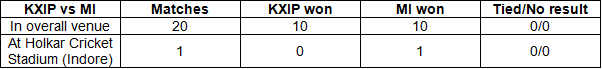 Head-to-head IPL records between KXIP and MI