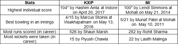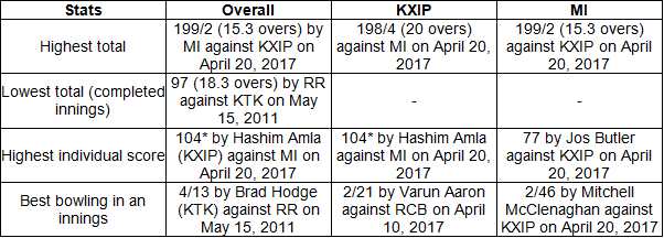 Important IPL stats between KXIP and MI