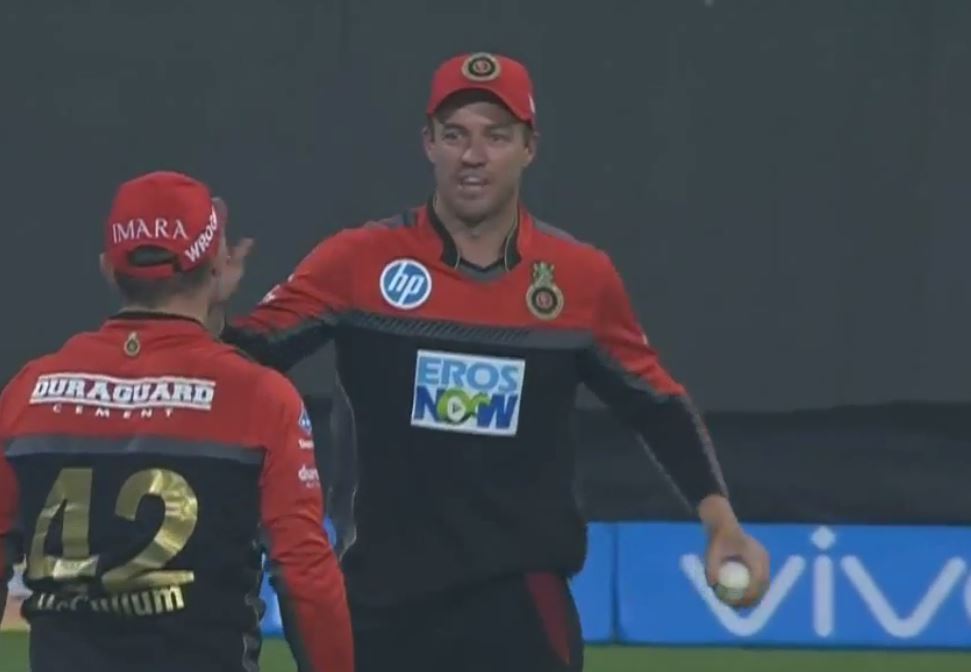On the Double Dhamaka Sunday, RCB was locking horns with KKR at latter’s home ground and during the 18h over of Kolkata’s chase, Chris Waokes was bowling to Andre Russell and on the fourth bowl of the over, Woakes delivered a slow bowl outside off, Russell cleared his front leg, and skews the ball off the outside half towards long-off. AB de Villiers runs back and to his right from mid-off. McCullum runs in from long-on as well. McCullum was never in the situation of catching the ball, so in the end, it was AB who took the clean catch and somehow managed to avoid the collision between the two. One has to say that it was a brilliant catch from Mr. 360. He also played some phenomenal shots during RCB’s batting as well.