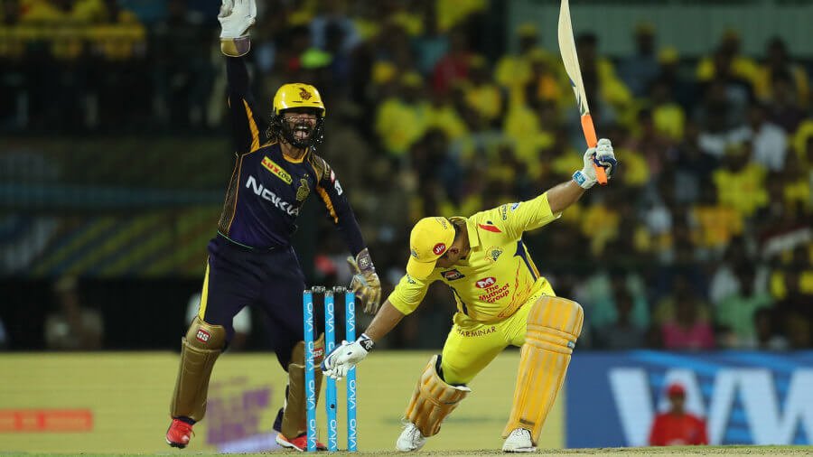 CSK was playing their first home match of the season after a gap of more than 1000 days and during a chase of a daunting target of 203, Piyush Chawla was bowling to Chennai skipper MS Dhoni and on the third ball of the over, MS miss timed a shot which took the inside edged off his bat and it had gone straightly to the hands of the KKR skipper Dinesh Karthik, who firstly fumble but somehow manages to hung n to the bowl and collects like a boss! KKR even didn’t appeal but Mahi started to walk.