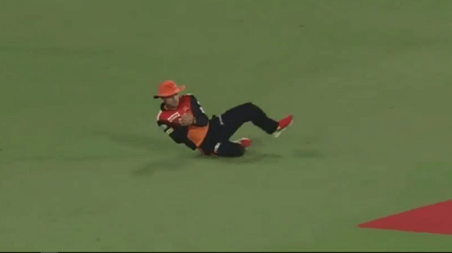 During the first inning of the match between SRH and RR, Shakib Al Hasan was bowling to Sanju Samson in the 14th over of the first innings, on the fifth ball of that over, Shakib brilliantly anticipated that Samson in step out which he did and the bowler bowled slow bowl outside off as a result of that, the batsman had to reach out to hit only to slice the ball high in the sky. Rashid Khan affected a rapid sprit from the sweeper cover position and timed his slide so correctly so that he can catch the bowl on time. It was a perfect combination of great bowling and brilliant cathing.