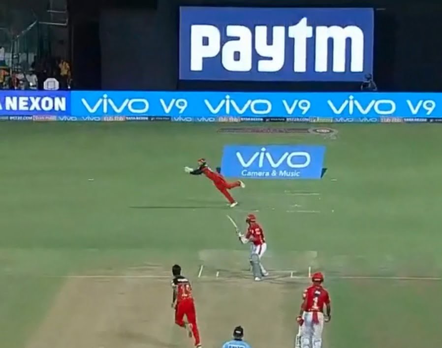 On the first delivery of his second over, the fourth of the innings, During the eighth match between RCB and KXIP, Umesh Yadav induced an outside edge of Mayank Agarwal’s bat. Coming off quickly from the hands of Yadav, the ball flew to Quinton de Kock within no time. However, speed wasn’t the only parameter which the South African wicket-keeper had to tackle. After meeting the edge of the bat, the ball was also going away from him. De Kock put in an acrobatic dive to his left in a bid to catch the ball cleanly and hand his team a much-needed breakthrough.