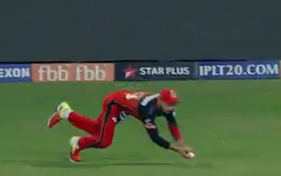 It happened on the penultimate delivery of the penultimate over when Dinesh Karthik hit a Mohammad Siraj to the long on fielder. The ball appeared to fall way in front of the fielder. Virat Kohli ran in, covered a decent ground and at the perfect moment, dived in front to grab the catch. Karthik ended up scoring an enterprising 23 (10) with the help of two fours and a six. Here is the video of the catch:
