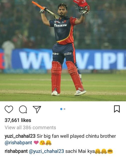 However, Rishabh still cherished the knock he played and posted a picture on his social media handle. He received a lot of comments and one among the various was from Yuzvendra Chahal. Chahal, in his comment, wrote, “Sir big fan well played chintu brother @rishabpant”. Rishabh Pant was quick to see the comment and funnily commented back, “@yuzi_Chahal23 sachi mai kya”.