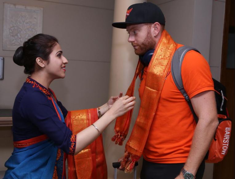 However, in the last game, Bairstow played a crucial role in taking his team over the line by playing one of his best T20 knocks and scored his maiden IPL century. The Sunrisers have arrived in Delhi on Tuesday and were welcomed by the hotel staff in a traditional way with an Orange shawl. Even Jonny Bairstow has welcomed in the same way as the official handle of the franchise shared the picture of Twitter.