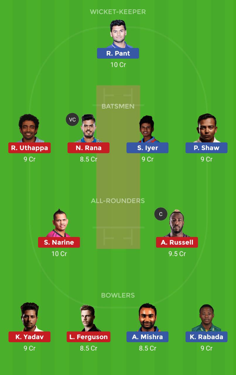 IPL 2019: Match 10 (DC vs KKR) – Probable Fantasy XI