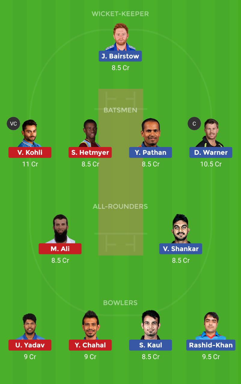 After the respective last games of both the teams, there is no doubt regarding the fact that Moeen Ali and Vijay Shankar are the best fit for the all-rounders’ slots. However, the only good option apart from them is Shakib Al Hasan or Clin de Grandhomme who can also be effective on the Hyderabad pitch.