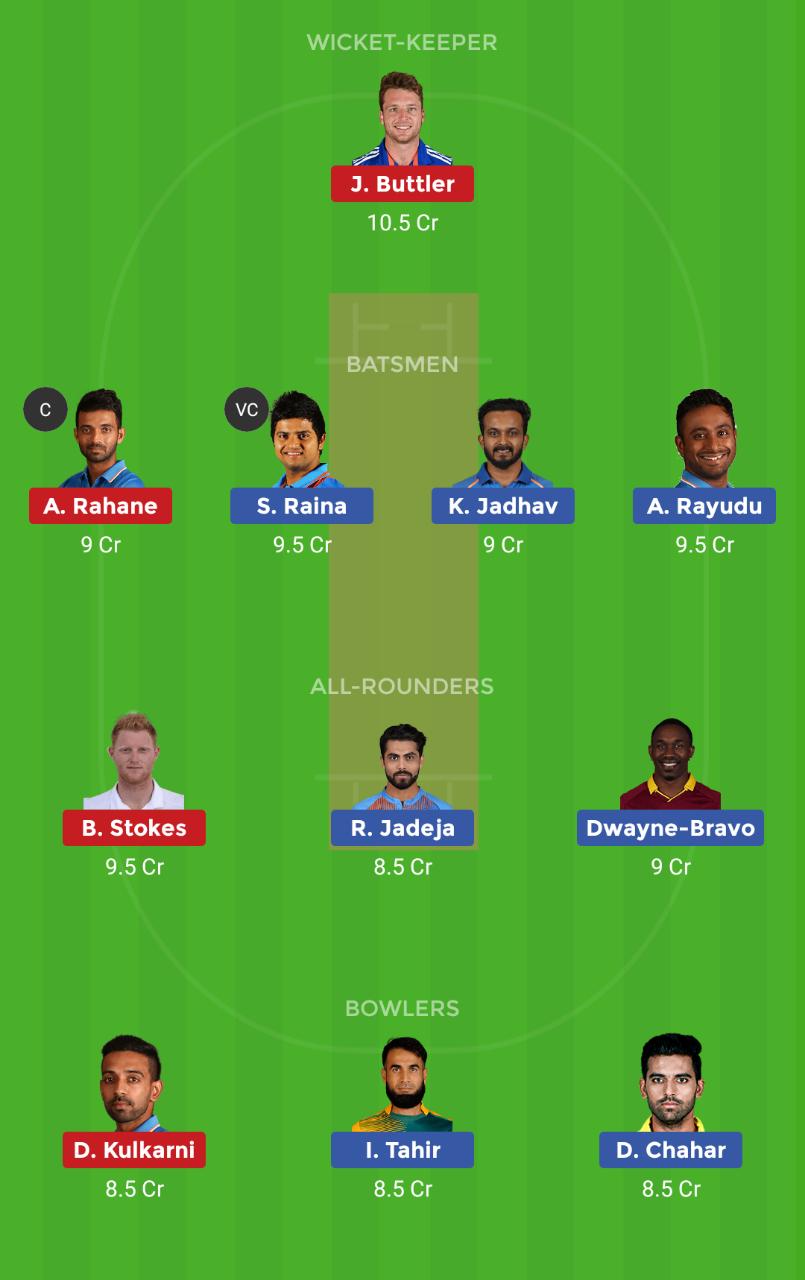 After watching the last games of both the teams one has to say that, Ajinkya Rahane, Kedar Jadhav, and Suresh Raina. However, Ambati Rayudu can also be a good option on the Chennai pitch. Apart for them, there are some good options to pick like Sanju Samson, Steve Smith, and Shane Watson.