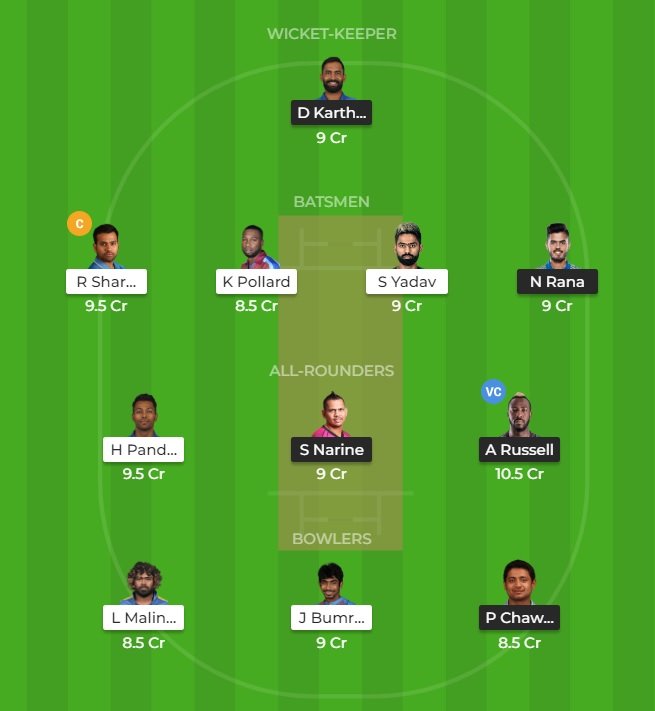 Going by the current batting form of both the teams, Rohit Sharma, Kieron Pollard, Surya Kumar Yadav, and Nitish Rana are one of the prime contenders for the fantasy cricket. Apart from them, there are some useful batsmen in the line-ups as well, like Chris Lynn, and Evin Lewis.