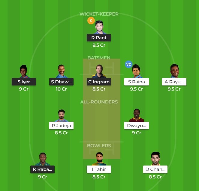 In terms of the last games of both the teams, Shikhar Dhawan, Colin Ingram, Ambati Rayudu, and Suresh Raina will be the crowd favorites, but one has to consider the fact that Delhi pitch will be more suitable for batsmen so picking an extra batsman will be helpful. The other suitable options for the batting line-up are players like Shreyas Iyer, Shane Watson, and Prithvi Shaw.