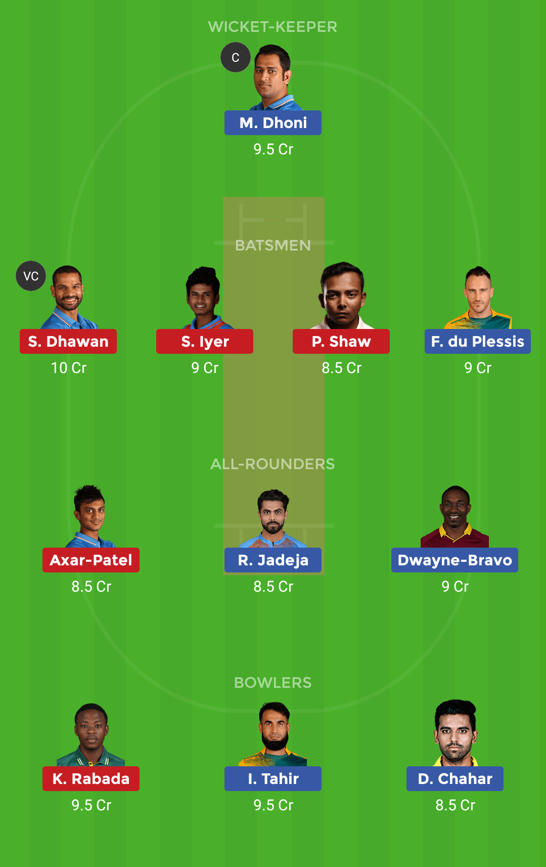 There are some really reliable all-rounders in both the teams but going by the current form, Axar Patel, Ravindra Jadeja, and DJ Bravo seems to be the perfect fit. Apart from them, the good all-rounder for IPL fantasy cricket is Chris Morris.