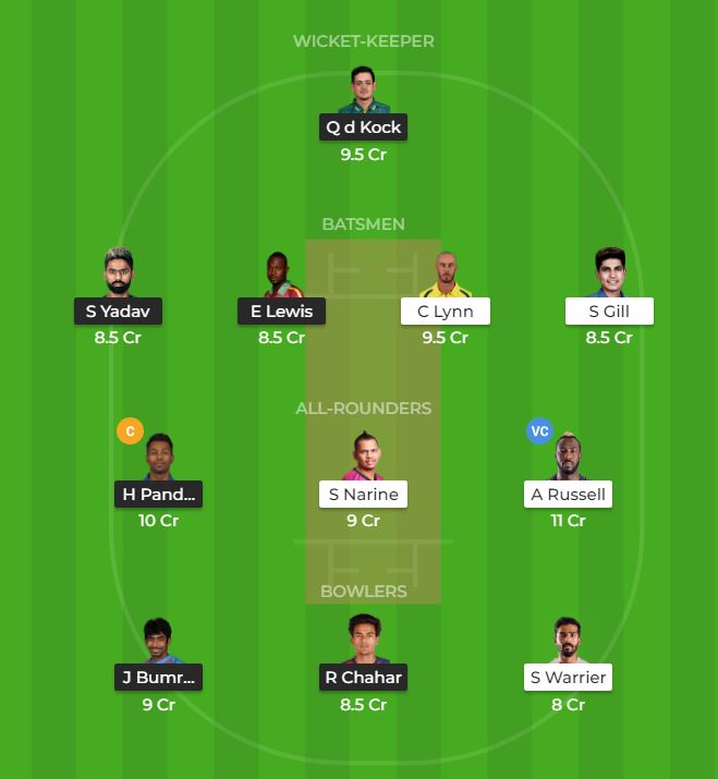 Going by the current batting form of both the teams, Surya Kumar, Evin Lewis, Chris Lynn, and Shubman Gill are one of the prime contenders for the fantasy cricket. Apart from them, there are some useful batsmen in the line-ups as well, like Rohit Sharma, Nitish Rana, and Robin Uthappa.