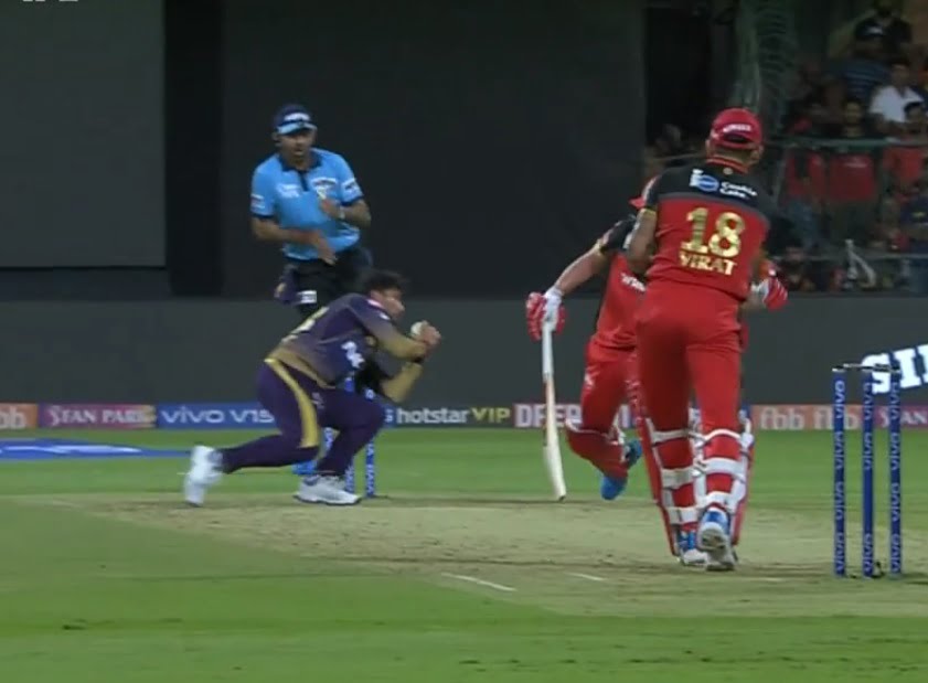 Kuldeep Yadav has the breakthrough as he tossed the ball up and Virat Kohli went for a full-blooded straight drive but failed to keep it down and as a result of that Yadav took the opportunity and grabbed the catch with both the hands. The catch was very difficult citing the fact that Virat has smashed it with full power and Kuldeep had very little time to take the catch.