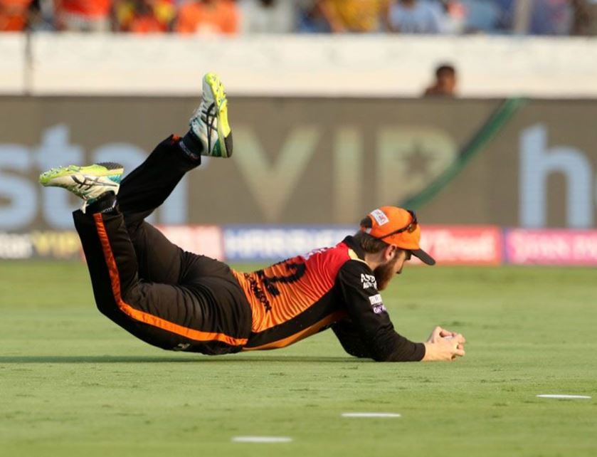 Even Chris Lynn lost his patience after the regular dismissals of the KKR batsmen as he was dismissed by Khaleel Ahmed in the 17th over. After getting frustrated with a sequence of mistimed strokes he decided to smash the ball over the cover and could only chip it inside the ring. Kane Williamson runs to his left from cover and times his slide to perfection to claim a fine catch.