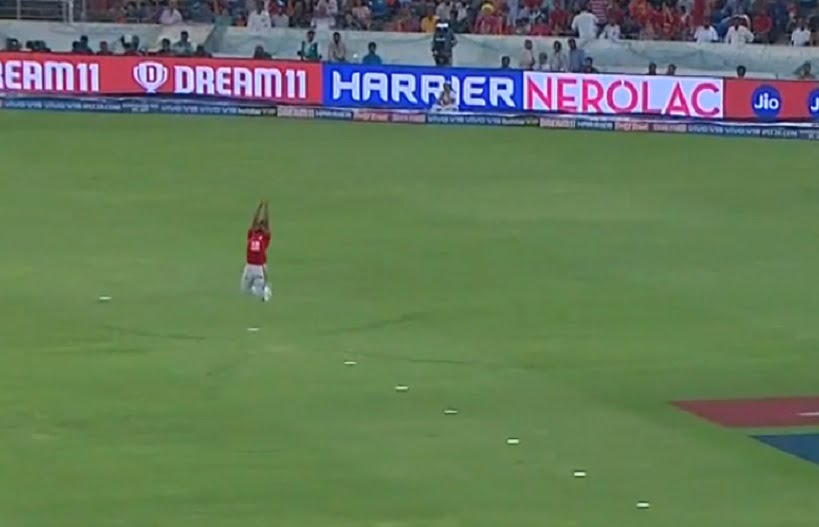 Despite the wickets of set batsmen, Kane Williamson and Mohammad Nabi kept on smashing Punjab as they added as many as 34 runs for the 4th wicket before the latter getting out in the 19th over of Mohammed Shami owing to a brilliant catch by Murugan Ashwin. On the second ball of the over, Williamson attempted to play the lofted driver over covers but, Ashwin took a brilliant catch by taking both the hands over his head to pluck the ball out of thin air. Shami delivered a slower short ball and Williamson did the mistake.