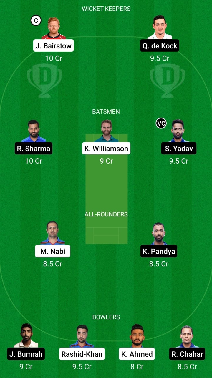Jonny Bairstow (c), Quinton de Kock, Rohit Sharma, Suryakumar Yadav (vc), Kane Williamson, Krunal Pandya, Mohammed Nabi, Rashid Khan, Rahul Chahar, Jasprit Bumrah and Khaleel Ahmed