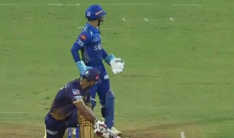 In fact, at one point during the match, the KKR batters managed to pick up a cheeky single while MI ‘keeper Ishan Kishan kept cluelessly searching for the ball. During the 9th over of Kolkata’s innings, Nitish Rana tried to reverse sweep Kumar Kartikeya for a boundary. However, Rana failed to connect the ball and he just managed to bottom-edge the ball right past Ishan Kishan’s legs.