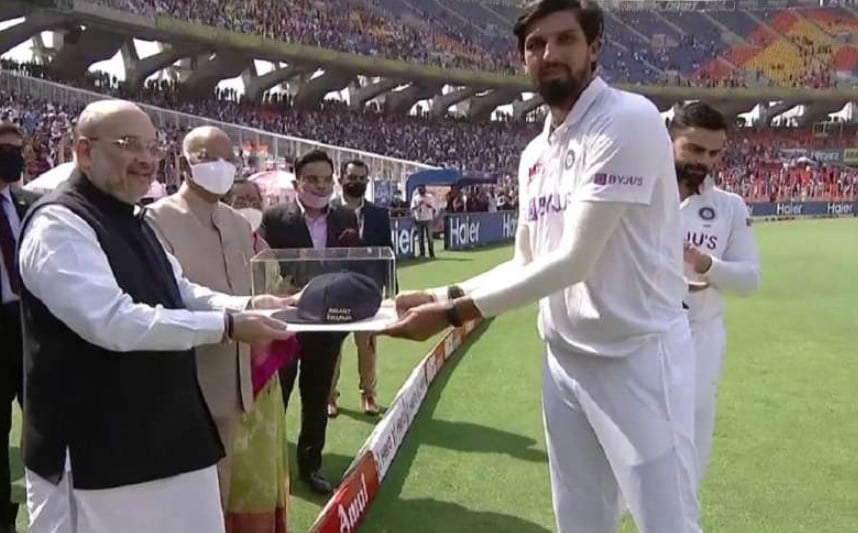 The veteran Indian pacer, Ishant Sharma received special mementos from the Indian President Ram Nath Kovind and Minister of Home Affairs Amit Shah on the occasion of his 100th Test match in Ahmedabad on Wednesday. The lanky pacer becomes the 10th Indian player and only the second pacer after Kapil Dev to play 100 Tests when he took the field against England at the Narendra Modi Stadium in Motera on Day 1.