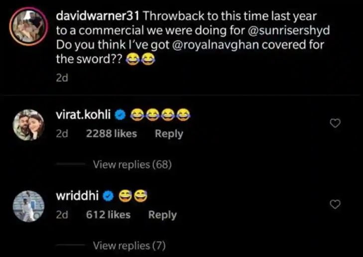 Not only Jadeja but the Indian skipper, Virat Kohli, and Wriddhiman Saha too reacted to Warner’s sword-wielding celebration using the bat. While Kohli and Saha reacted with emoticons, Jadeja, said “Hahahaah almost there David.”