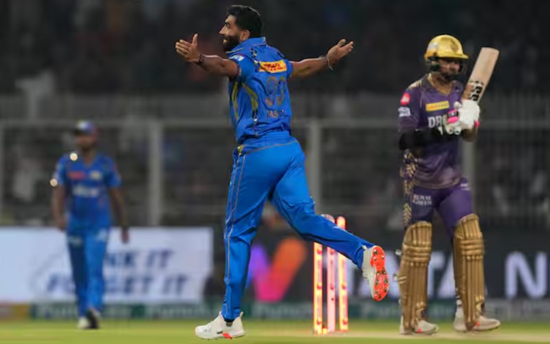 The Mumbai Indians made a promising start in the IPL 2024 match against the Kolkata Knight Riders, claiming the wickets of both KKR openers within seven balls. Initially, it seemed like KKR might gain momentum after Phil Salt struck a six off Nuwan Tushara’s first delivery. However, Tushara quickly dismissed him, followed by a crucial breakthrough by Jasprit Bumrah, stunning Sunil Narine with a remarkable delivery that sent the stumps flying.