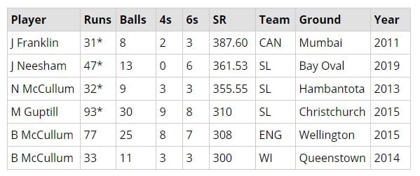 Neesham’s strike rate read 361.53, the second-highest for a New Zealand batsman in an innings.