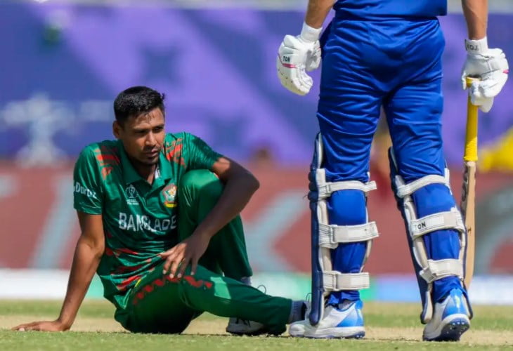 Fortunately, he avoided a twisted ankle, but he remained down momentarily. The physio attended to him, focusing on his heavily strapped left knee. Fortunately, Mustafizur recovered and resumed his bowling.