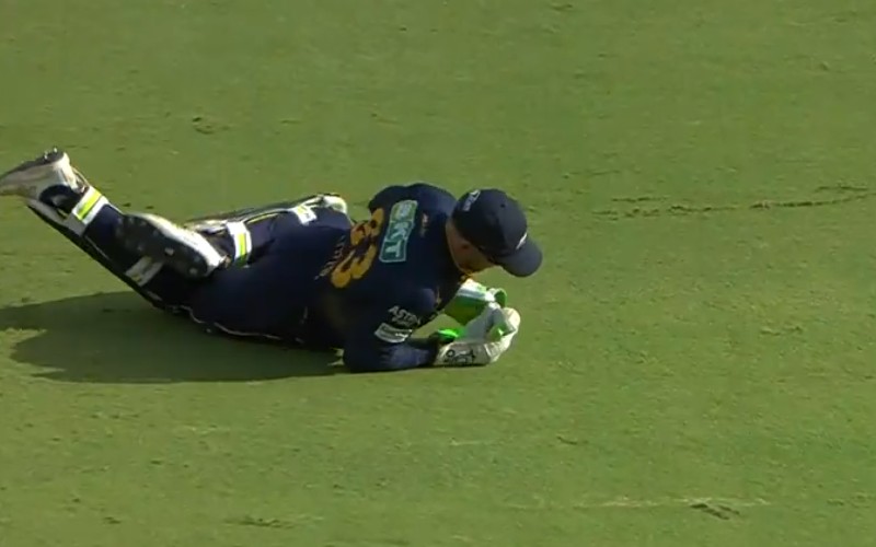 Vipraj Nigam, trying to create room and guide it past the keeper, could only manage a faint edge. Buttler, ever-alert, flew to his right and plucked a one-handed screamer that left the Ahmedabad crowd in raptures.