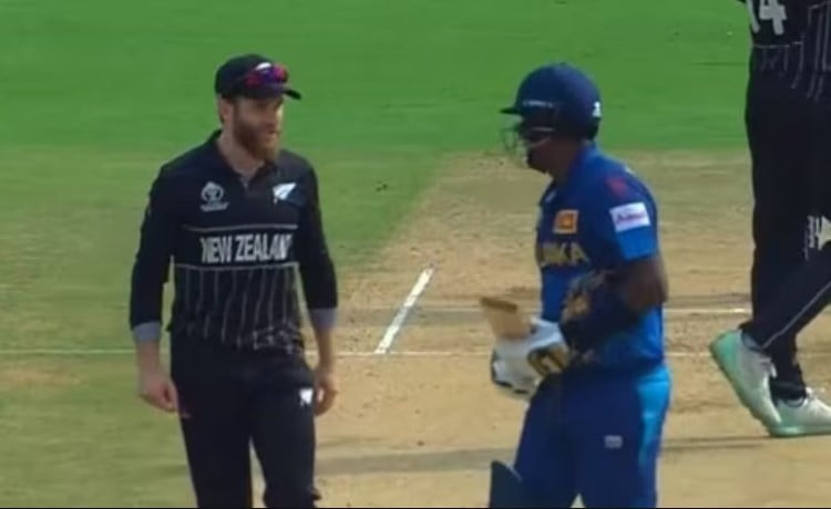 Angelo Mathews along with the New Zealand skipper then shared the light moment before taking the guard. For the uninitiated, Angelo Mathews was termed timed out in the game against Bangladesh. As he walked out to bat in that game, the strap of his helmet broke before taking the guard. In the meantime, Shakib Al Hasan appealed and he was deemed timed out.