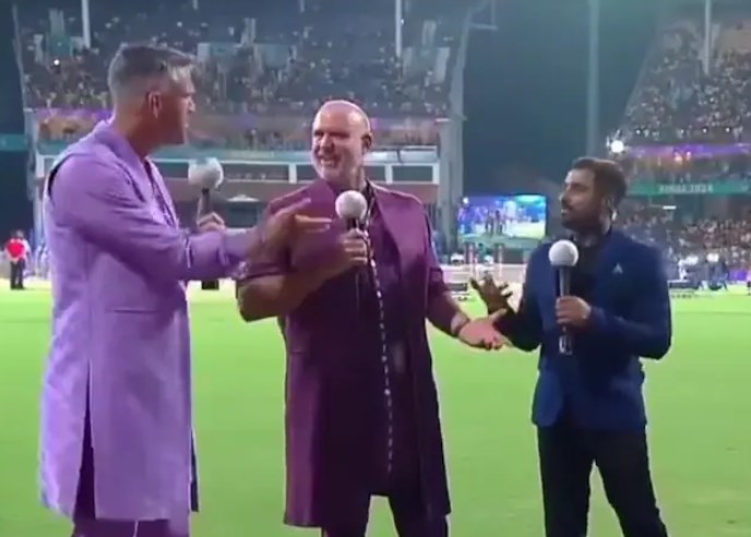 Ambati Rayudu had initially sported an Orange waistcoat but later switched to a navy blue one. Playfully, Pietersen teased Rayudu for not remaining loyal to the team he had been supporting earlier, jesting, “I am supporting both the teams. I am supporting good cricket,” Rayudu responded.