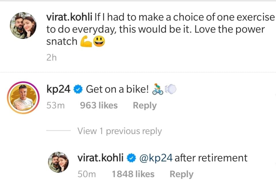 Pietersen made an attempt to troll India skipper and commented, “get on a bike.” In reply to the former England batsman, Virat responded, “@kp24 after retirement”.