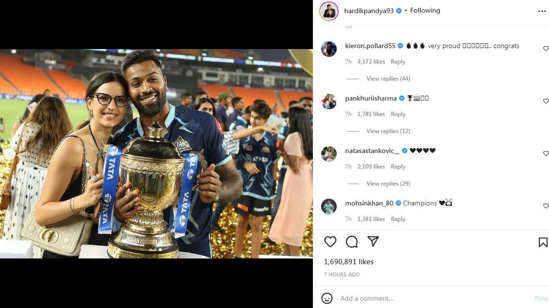 Kieron Pollard went on to congratulate Hardik Pandya on the massive victory. He left a comment on Hardik Pandya’s Instagram post regarding the win.