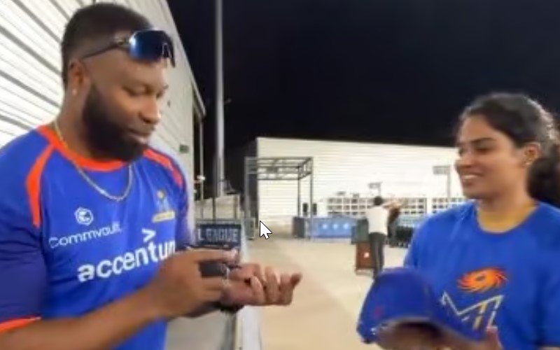The fan, who was in the stadium dressed to support MI New York, was holding up the team’s flag when she was accidentally hit on the back by the powerful six which Pollard hit. Showing true sportsmanship, Pollard went up to her, apologized, and signed an autograph, took a selfie with the woman and her husband. The nice gesture was captured on video and went viral on social media within minutes.