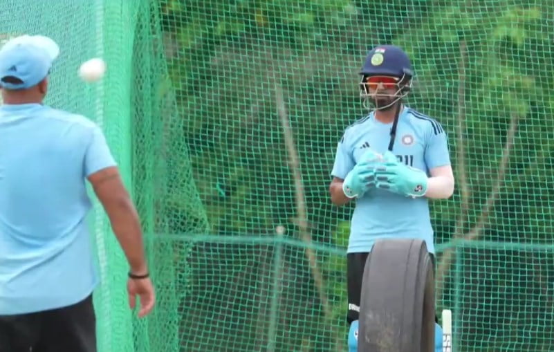 Ahead of the tournament, Indian cricket star KL Rahul has been diligently honing his wicket-keeping skills. The 31-year-old batsman was spotted practicing with a tire placed in front of the stumps, further obstructing his vision. This snapshot of his training has been circulating on social media, drawing attention from fans and experts alike.