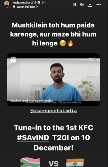 Keshav Maharaj playfully engaged in banter on his Instagram story, remarking, “Mushkilein toh hum paida karenge, aur maze bhi hum lenge” (We’ll create challenges, and we’ll enjoy them too).