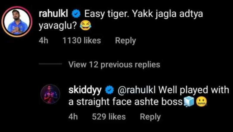 Prasidh Krishna posted a few photos on his Instagram post after RR’s win against KKR, and captioned it, “YES WE CAN 💪@rajasthanroyals”. The LSG skipper decided to pull his leg as he commented: “Easy tiger. Yakk jagla adtya yavaglu? (Why do you always fight?)”