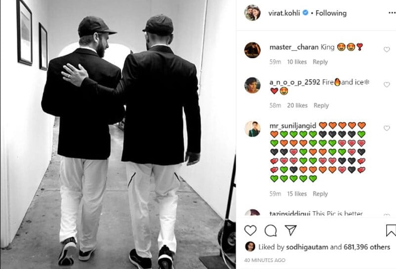 Some fans were in awe of Kohli’s admiration for the Kiwi skipper, a fan summed up the picture aptly by captioning it “fire and ice.”