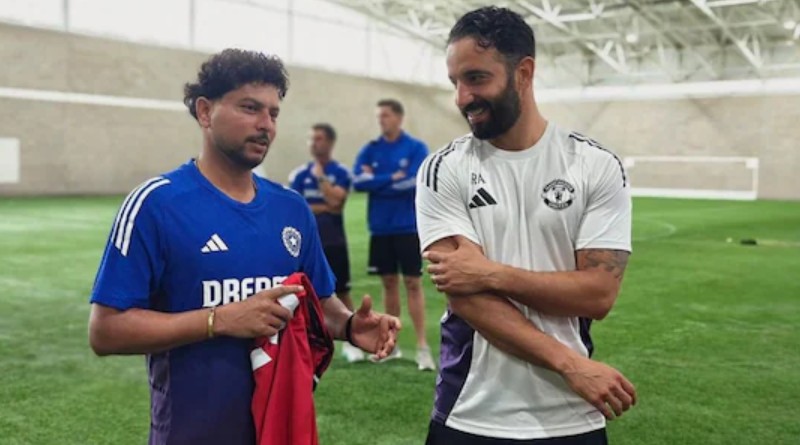 Former England batter Kevin Pietersen and India’s left-arm wrist spinner Kuldeep Yadav engaged in a light-hearted exchange on X after the latter shared a series of pictures with Manchester United coach Ruben Amorim. The post, part of the “United in Manchester” campaign shared by the BCCI, showed Indian cricketers interacting with Manchester United players and staff at the Carrington training ground, drawing a cheeky reaction from Pietersen.