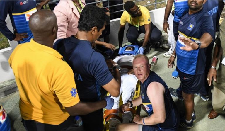 On the third day of play, as many as 20 wickets were fallen and that has brought the match in Sri Lanka’s favor. The hosts, who lead the three-match series 1-0, had a 132 run lead when last man Shannon Gabriel walked into bat. Gabriel lofted off-spinner Dilruwan Perera and Kusal Perera fielding at long-on and he dived to take the catch but the ball cleared the boundary and the fielder crashed into the advertising hoardings. Perera’s face and ribs made contact with the hoardings and he remained motionless for a couple of minutes forcing the support staff to rush to the scene.