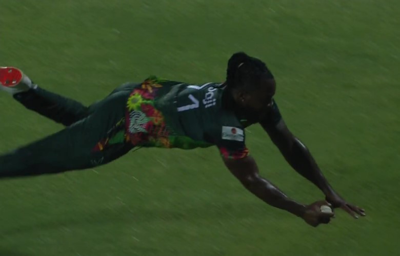 What an unbelievable catch from Kyle Mayers.#CPL24 #SKNPvSLK #CricketPlayedLouder #BiggestPartyInSport #CaribCatch pic.twitter.com/iUsCRzhez3