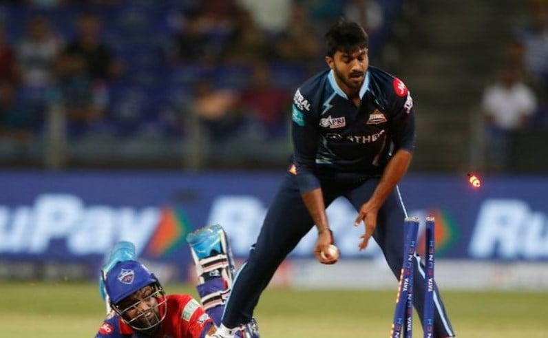 The game between Gujarat Titans (HT) and Delhi Capitals (DC) witnessed a run-out in an unusual way as Lalit Yadav was sent back to the pavilion by the opposite team. While going for the second run, Abhinav Manohar’s throw was collected by Vijay Shankar and he dislodged the bails before Lalit was able to cross the crease.