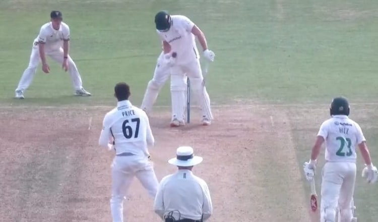 However, he quickly realized his mistake and immediately released the ball. Unfortunately for him, it was too late. Price and Kimber’s Gloucestershire teammates appealed for obstructing the field, prompting on-field umpires Graham Lloyd and Paul Baldwin to discuss the incident and ultimately give Kimber out.
