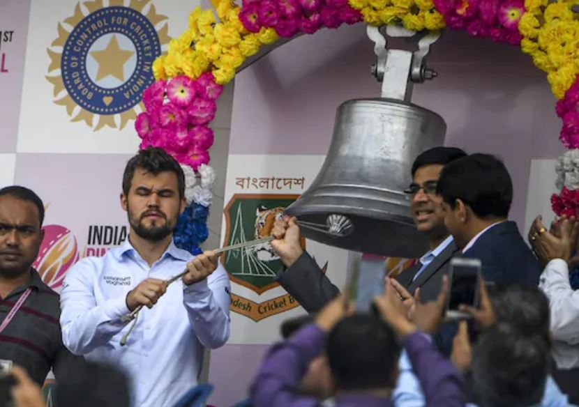Norwegian chess grandmaster and reigning world champion Magnus Carlsen was also seen witnessing India’s day-night Test debut as he was in the city for Tata Steel Rapid and Blitz chess tournament. On Day 2 of the Kolkata Test, Magnus Carlsen and India’s Viswanathan Anand rang the ceremonial bell at Eden Gardens to announce the beginning of the first session.