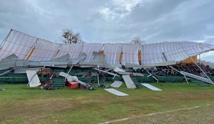 The roof on a makeshift grandstand was seen getting collapsed at Galle International Stadium owing to the heavy rains, delaying the start of the second day’s play between Sri Lanka and Australia. No spectators were in the stand when the incident took place, with Australia’s team only just arriving at the ground. Rain began falling around before the scheduled first ball on day two of the first Test, with strong gusts blowing in off the coastline.