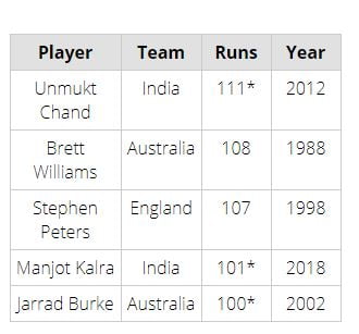 Kalra’s unbeaten innings of 101 is the fourth-highest individual score by a cricketer in the final of Under-19 World Cup. Kalra had also scored a half-century when India played Australia in their first group-stage match in the tournament.