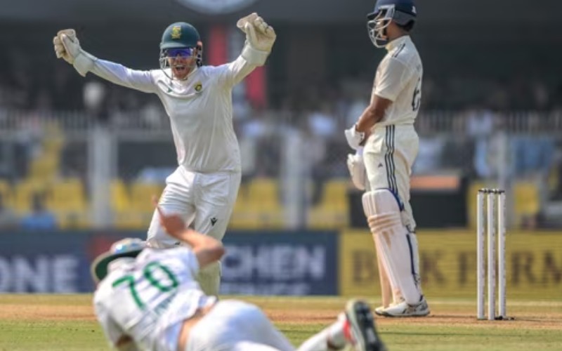South Africa’s spinners finally found their rhythm on the Guwahati surface, extracting sharp slow turn that had been missing for most of the match. Their persistence paid off as they removed two key Indian batters, triggering a shift in momentum on Day 3 of the second Test. One of the standout moments came during Yashasvi Jaiswal’s dismissal, where Marco Jansen showcased outstanding athleticism by diving low to complete a superb catch that changed the complexion of the innings.