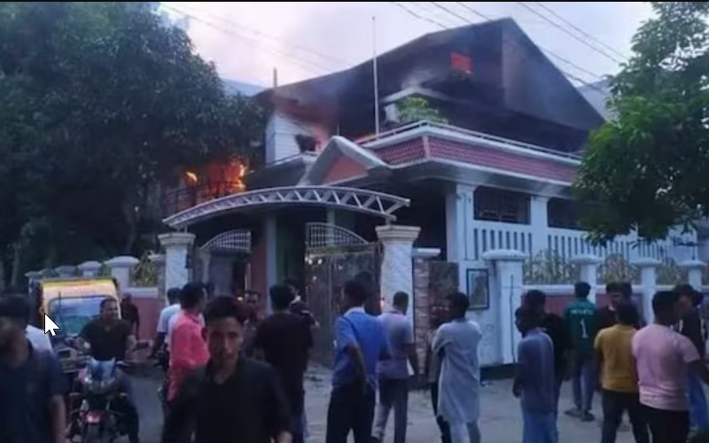Bangladesh former national captain and currently AL mp Mashrafe Mortaza’s house being burned down.. pic.twitter.com/hteebrdXcJ