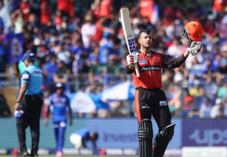 Mayank Agarwal played a fullish delivery past the short third to reach the landmark, and soon after, he took his helmet off and looked up to the sky with eyes closed. The whole SRH squad members, who were sitting in the dugout, gave him a standing ovation.