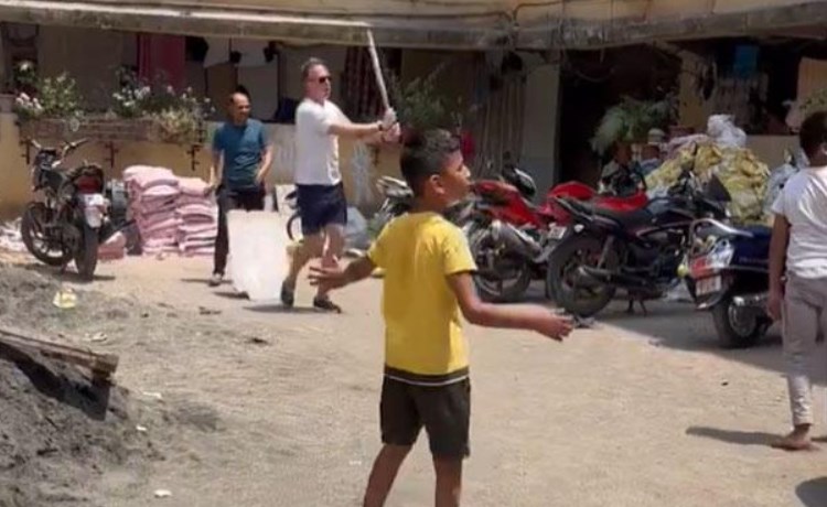 Michael Vaughan tweeted, “Loved playing with the kids in #Mumbai… similar pitch to the Test pitches #India.” In another tweet, he humorously remarked on the informal rules of gully cricket, stating, “Kids just so happy to play the game anywhere in #Mumbai… surely it should be one hand one bounce off the motorbike… #India.”