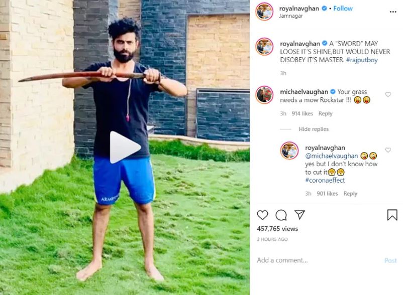 The veteran Indian all-rounder, Ravindra Jadeja, and former England skipper, Michael Vaughan were engaged in a funny banter on Instagram that left fans in splits on Sunday. Jadeja took to Instagram to share a video in which he can be seen wielding his sword in his lawn in Jamnagar.