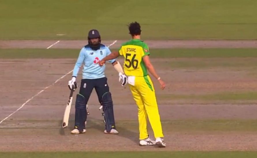 The fiery Australian fast bowler, Mitchell Starc gave warning to the English spinner, Adil Rashid to get back in his crease instead of running him out at the non-striker’s end in the 49th over of the English innings in the 3rd ODI against Australia on Wednesday. Rashid had smashed Starc for six two balls before the incident.